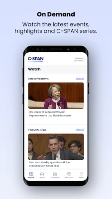 • Live & on-demand coverage of U.S. House and Senate proceedings, congressional hearings, White House events, courts, campaigns, and more