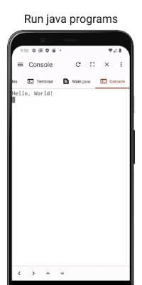 Editor - Code completion for java. - Real Time error checking. - Auto backup if you leave the app without saving. - Undo and Redo. - Support for characters not normally present in the virtual keyboard like tabs and arrows.