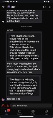 - Comm supports "sidebars", which are sort of like threads in Slack. Sidebars are created in response to a message in a parent thread.