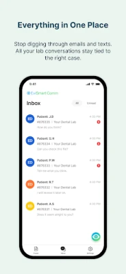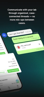 - Stop digging through emails and texts. All your lab conversations stay tied to the right case.