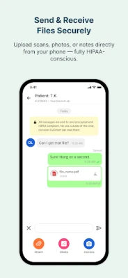 - Upload scans, photos, or notes directly from your phone — fully HIPAA-conscious.