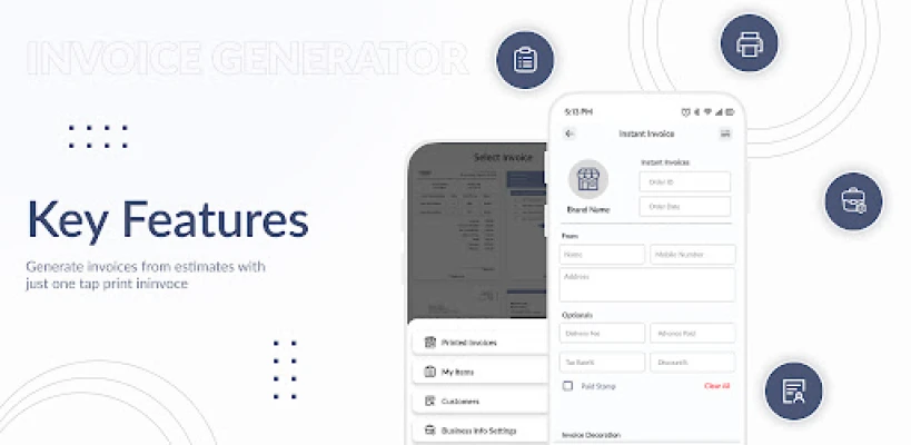 The app should be capable of handling different tax rates and applying them accurately to invoices. Capability to store and manage a database of created invoices for easy access in future.