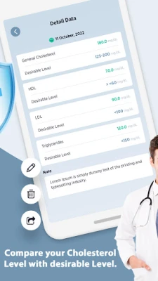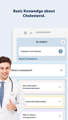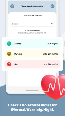 Personalized Health Indicators: See your cholesterol status clearly marked as Normal, Warning, or High on your dashboard.