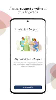 The app offers savings card enrollment, features to help you track dosing and treatment progress, helpful resources, and one-click-away support with your Companion in Care™ team* who can also answer any questions you might have about injection training and provide the ongoing support you may need.