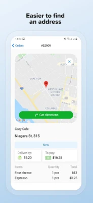 The app will route to the delivery address in courier-friendly maps: Google, Waze, etc.