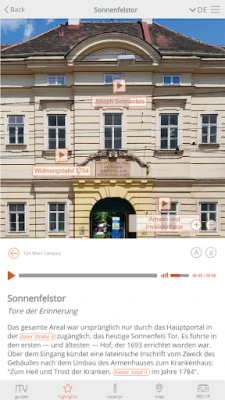 Tauchen Sie mit der Guide App Universität Wien in die spannende Geschichte der Universität Wien und entdecken Sie faszinierende und unerwartete Details rund um die Alma Mater Rudolphina. Sämtliche Inhalte der Guides in der App sind von beyondarts und Angehörigen der Universität Wien sorgfältig recherchiert und zu spannenden Episoden aufbereitet. Die App ist multimedial, interaktiv, mehrsprachig und barrierefrei.
