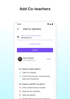 Just open the app, create your classroom, invite students to join and begin with them a journey of comprehensive online classroom experience with a simple interface.